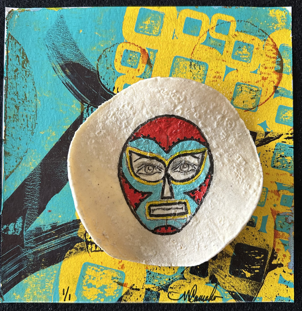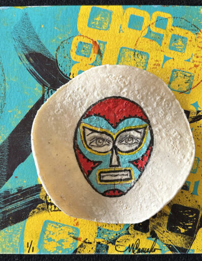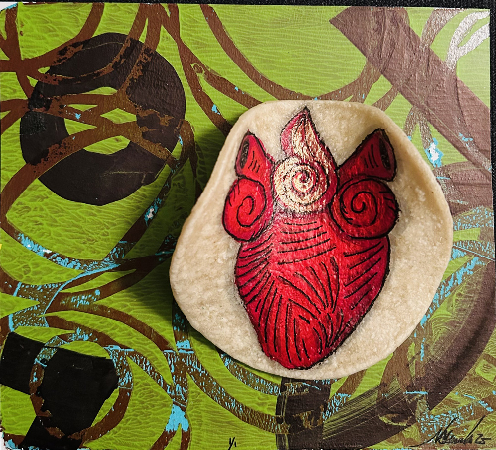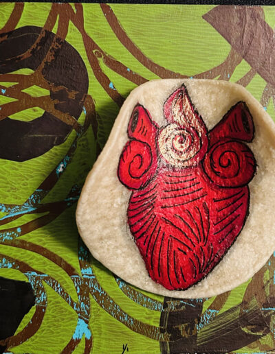 Gel plate or Gelli plate, printing is a dynamic form of creating and making monoprints “one-of-a-kind” prints. This gelatin plate lends itself to all kinds of resist type prints. By working with this soft, reusable gel plate I’m able to create unique and layered painterly effects adding dimension and contrast to my woodblock or linoleum print.